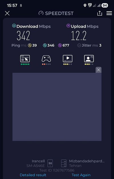 تست سرعت موبایل دیتا 5G توسط خسروبیگی منتشر شده 8 آذر 1404 تست سرعت همین الان یهویی دیدم اینترنت گوشیم 5G هست تست گرفتم دانلود 342 آپلود 12.2 مرتبط: نمایش سرعت اینترنت در Taskbar مختصات نسل پنجم شبکههای موبایل؛ دانلود ۲۰ گیگابیت بر ثانیه و باز هم در باره سرعت اینترنت در ایران