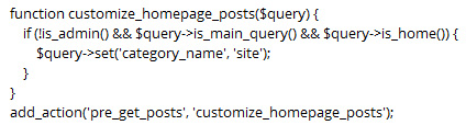 add_action(‘pre_get_posts’, ‘customize_homepage_posts’);