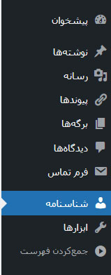 پیشخوان – نوشته ها – رسانه – پیوندها – برگه ها – دیدگاهها – فرم تماس – شناسنامه – ابزارها