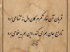 قربان آن غارتگرم کان دل نهتنها میبرد تاراج جان هم میکند دین هم به یغما میبرد شیخ بهایی