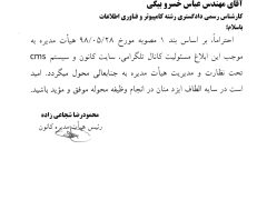 لازمست به عرض عالی همکاران کارشناس رسمی دادگستری برسانم دیروز برای تحویل نظریه کارشناسی شماره 71 به حل اختلاف رفتم قبول نکردند و گفتند باید الکترونیکی ارسال کنی برگشتم و...